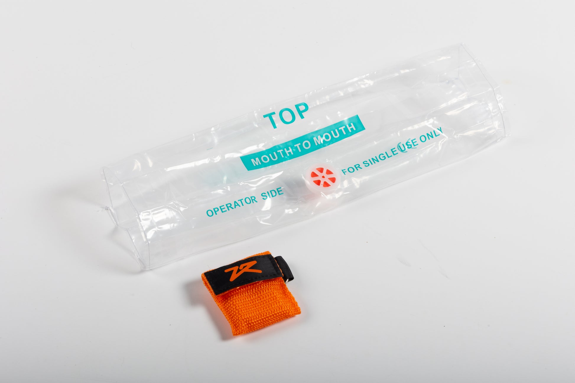Máscarilla para RCP con válvula unidireccional desechable. Práctica y fácil de transportar en llavero. Impide que la respiración y los fluidos corporales del paciente se filtren al reanimador. Apta para ser utilizada en pacientes adultos como pediátricos.